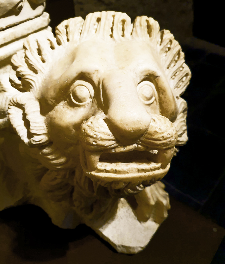 Tuttavia esaminiamola partendo dalla parte bassa, dove, protette ciascuna da uno splendido leoncino di marmo a fauci spalancate, si ergono le quattro Virtù Cardinali, di Lupo di Francesco e Bonaiuto di Michele, che risalgono circa alla seconda metà del 1300.